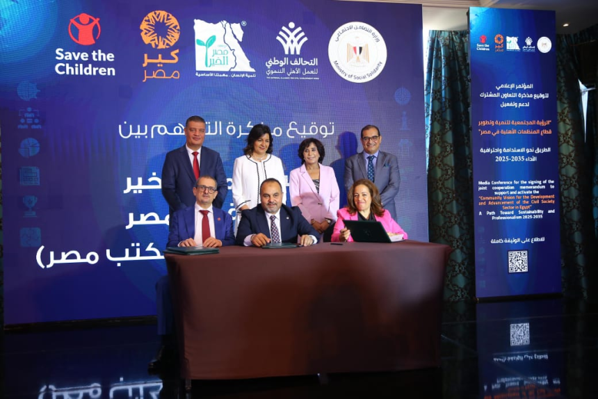 شهدت السفيرة نبيلة مكرم رئيس الأمانة الفنية للتحالف الوطني للعمل الأهلي التنموي، والدكتور أيمن عبد الموجود الوكيل الدائم لوزارة التضامن الاجتماعي نائبًا عن الدكتورة مايا مرسي وزيرة التضامن الاجتماعي، توقيع مذكرة تفاهم بين مؤسسة مصر الخير، ومؤسسة كير مصر للتنمية، وهيئة إنقاذ الطفولة – مكتب مصر، لدعم وتفعيل الرؤية المجتمعية لتنمية وتطوير قطاع المنظمات الأهلية في مصر، في إطار التعاون المشترك لتعزيز دور مؤسسات المجتمع المدني في تحقيق التنمية المستدامة، وبما يتماشى مع رؤية مصر 2030، وبما يتناسب مع حجم التحديات العالمية والخبرات التراكمية المصرية.