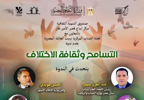 الليلة.. قصر الأمير طاز يستضيف ندوة “التسامح وثقافة الاختلاف” بمشاركة نخبة من الشخصيات العامة